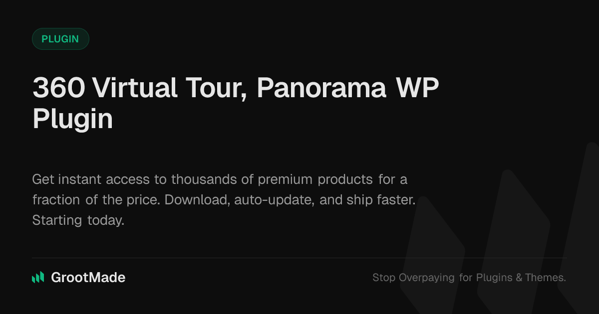 GrootMade is NOT affiliated with 360 Virtual Tour, Panorama WordPress Plugin or its original author. 360 Virtual Tour, Panorama WordPress Plugin™ is a trademark of its respective owner and use of it does not imply any endorsement or affiliation. This product has been forked under the GNU General Public License (GPL) and all non-GPL assets (such as proprietary images, fonts, and branding) have been removed. Distributing GPL-licensed code is 100% legal.