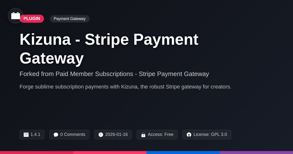 GrootMade is NOT affiliated with Paid Member Subscriptions - Stripe Payment Gateway or its original author. Paid Member Subscriptions - Stripe Payment Gateway™ is a trademark of its respective owner and use of it does not imply any endorsement or affiliation. This product has been forked under the GNU General Public License (GPL) and all non-GPL assets (such as proprietary images, fonts, and branding) have been removed. Distributing GPL-licensed code is 100% legal.