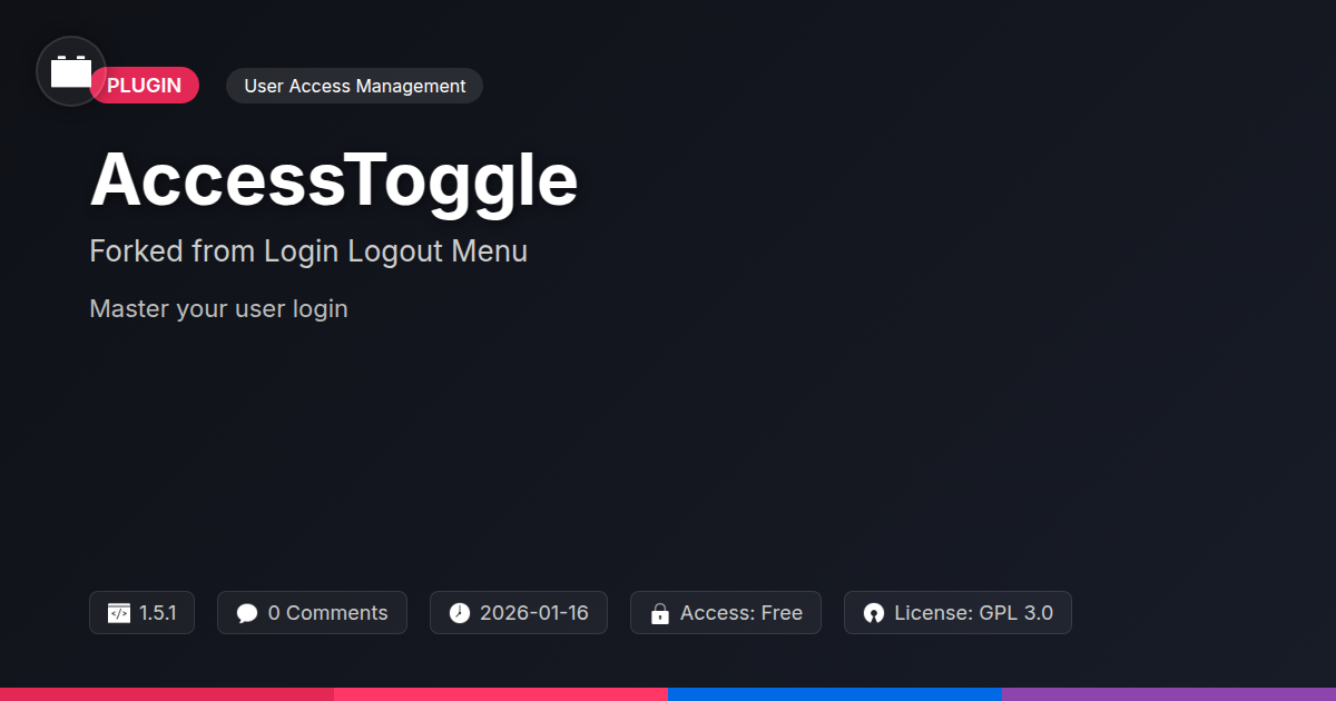 Remember those clunky menus from last chapter? The ones that treated your logged-in VIPs the same as anonymous passersby? Yeah, we thought so. Enter AccessToggle. This little marvel is designed to banish those navigational nightmares to the land of forgotten plugins. Its core function is beautifully simple: it shows one set of menu items to visitors who haven't bothered to log in, and a completely different, more personalized set to those who have. Imagine the user experience! Suddenly, your registered users see their shortcuts, their dashboards, their special offers. Your guests see the welcome mat and the signup form. It’s about context. And security? It subtly whispers, 'This site is smart, it knows who you are.' No more anonymous browsing to a members-only portal. AccessToggle puts you, the developer, firmly in the driver's seat. It's open-source, meaning you can tweak it, prod it, and make it sing. Unleash its flexibility. Take control. Your menus will thank you.