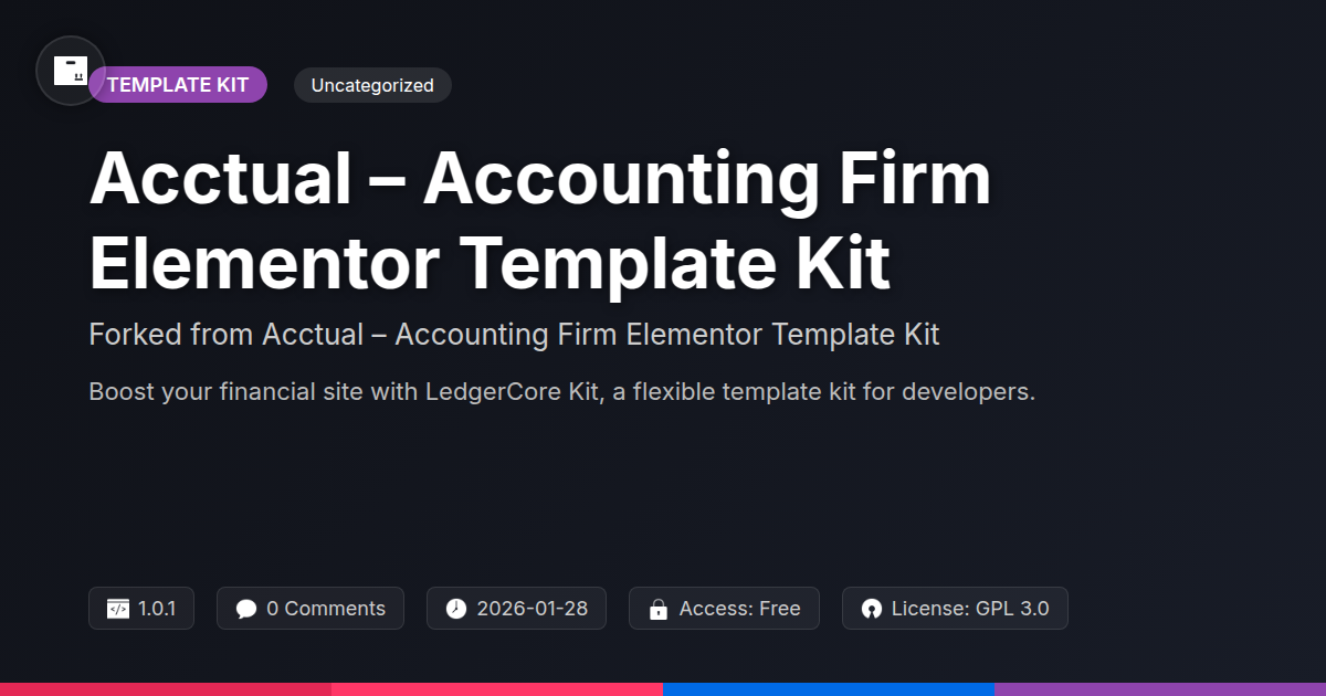 GrootMade is NOT affiliated with Acctual – Accounting Firm Elementor Template Kit or its original author. Acctual – Accounting Firm Elementor Template Kit™ is a trademark of its respective owner and use of it does not imply any endorsement or affiliation. This product has been forked under the GNU General Public License (GPL) and all non-GPL assets (such as proprietary images, fonts, and branding) have been removed. Distributing GPL-licensed code is 100% legal.