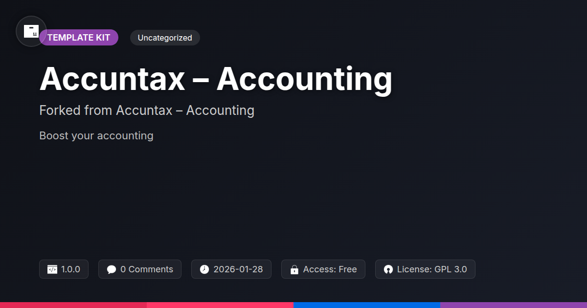 GrootMade is NOT affiliated with Accuntax – Accounting & Tax Consultancy Services Elementor Template Kit or its original author. Accuntax – Accounting & Tax Consultancy Services Elementor Template Kit™ is a trademark of its respective owner and use of it does not imply any endorsement or affiliation. This product has been forked under the GNU General Public License (GPL) and all non-GPL assets (such as proprietary images, fonts, and branding) have been removed. Distributing GPL-licensed code is 100% legal.