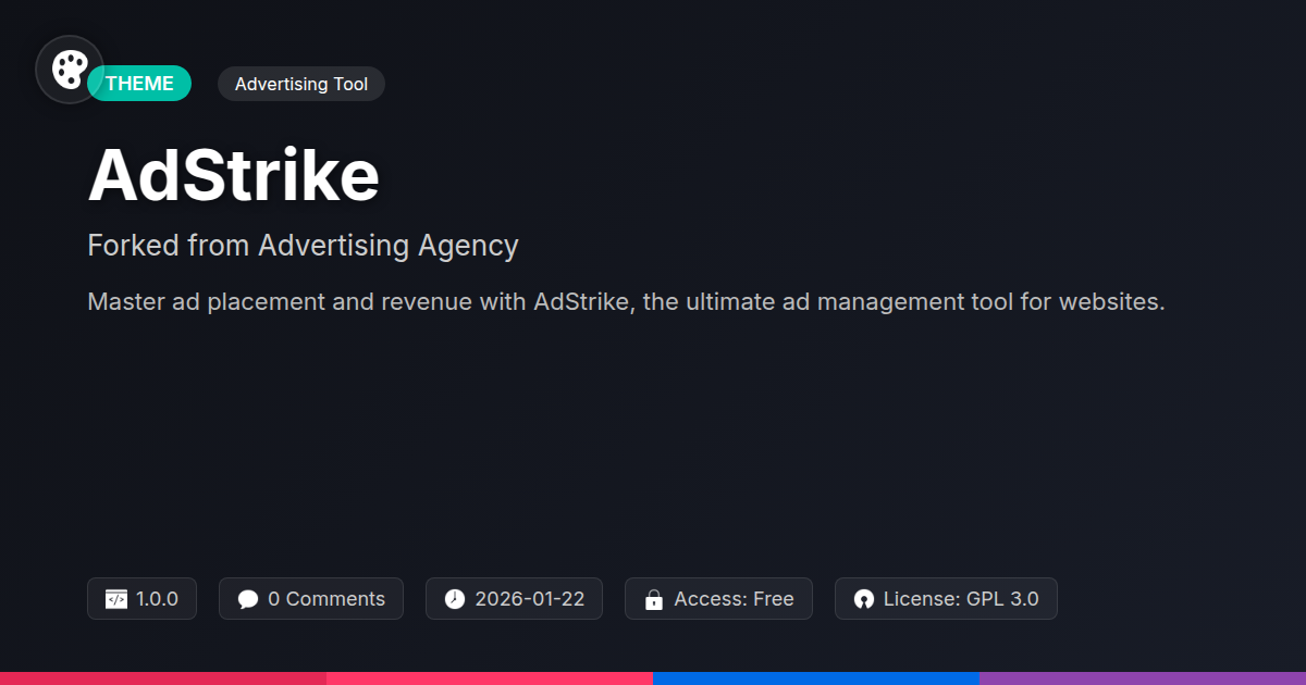 It’s time to embrace a smarter approach to online advertising. AdStrike isn't just another plugin. It's a transformation for your digital ventures. Developers, streamline your workflow. Deliver advanced monetization to clients effortlessly. Agencies, unlock new service potentials. Delight your clients with optimized ad performance. Open-source enthusiasts, contribute to a robust, evolving ecosystem. AdStrike tackles complexity with elegant simplicity. Boost your revenue streams. Gain granular control over your ad inventory. Understand what truly drives engagement. This is more than just code. It's a strategic advantage. Join a community dedicated to efficient, profitable web monetization. Take decisive action today. Empower your digital assets like never before.