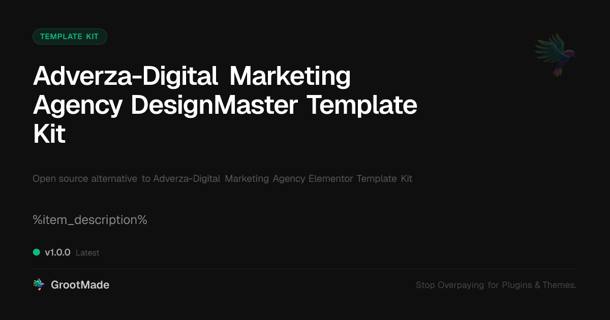 GrootMade is NOT affiliated with Adverza-Digital Marketing Agency Elementor Template Kit or its original author. Adverza-Digital Marketing Agency Elementor Template Kit™ is a trademark of its respective owner and use of it does not imply any endorsement or affiliation. This product has been forked under the GNU General Public License (GPL) and all non-GPL assets (such as proprietary images, fonts, and branding) have been removed. Distributing GPL-licensed code is 100% legal.