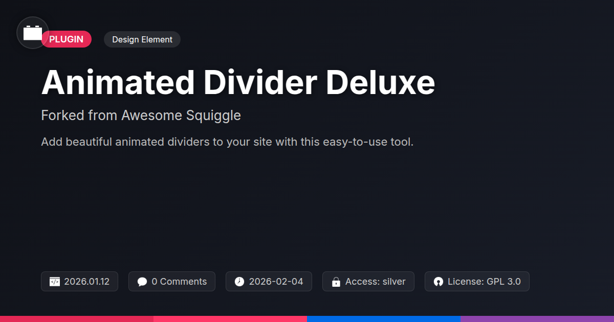 So, you're asking, 'Why bother with fancy dividers?' Because your audience deserves more than static, boring lines. They deserve an experience. Investing in dynamic visual separators is investing in professional polish. It’s about making a statement. Forget those stale, predictable designs. Embrace the evolution! This is where your site springs to life. You’ll elevate your whole presentation. Users will stick around longer. Your brand gains an undeniable edge. Get your hands on Animated Divider Deluxe. It’s the smart move for impactful design. Great looks don't need to be complex. Dive in and see the difference.