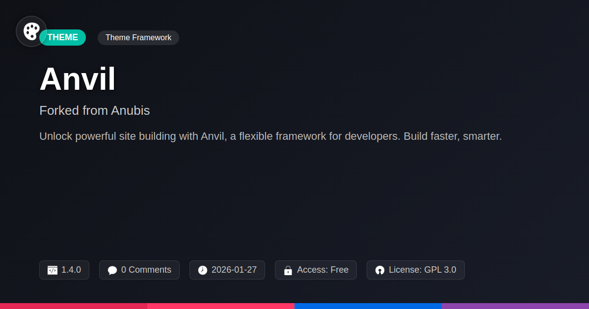 So, you've survived countless theme updates that broke everything, wrestled with page builders that had more features than a Swiss Army knife and twice the complexity, and perhaps even contemplated a career change to artisanal cheese making. We’ve all been there. But what if there was a way to build fast, lean, and incredibly powerful websites without feeling like you're constantly fighting your tools? That's where Anvil, born from a lineage of proven innovation, enters the chat. It’s not another bloated behemoth disguised as a theme; it’s a meticulously crafted framework designed for those who appreciate elegant code, blazing-fast performance, and the honest-to-goodness freedom to build exactly what their clients—or their own brilliant ideas—demand. We've forked from a solid foundation, not to reinvent the wheel, but to hone it into a razor-sharp instrument for developers like you. Think of it as inheriting a fantastic recipe, then adding your own secret spices and a turbocharger. Whether you're a seasoned agency churning out client sites or a solo developer with a vision, Anvil provides the robust, flexible, and refreshingly unopinionated scaffolding you need to not just build websites, but to craft digital experiences that truly stand out. It’s for the tinkerers, the optimizers, the ones who understand that a clean codebase is a thing of beauty and a fast-loading site is a work of art. Stop letting your development environment dictate your creativity. Embrace a framework that’s as agile and ambitious as you are. Dive into Anvil, and let's build something legendary, shall we?