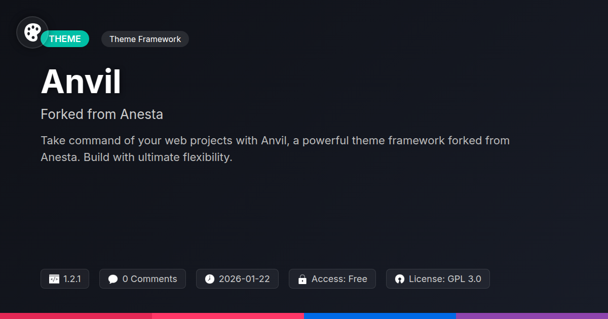 So, there you have it. Anvil. It’s not just another theme framework; it's the digital equivalent of finding that perfect tool you didn’t know you were missing, the one that finally makes the job enjoyable instead of just… a job. We get it. The world of web development can feel like navigating a minefield blindfolded while juggling flaming chainsaws. You’ve wrestled with quirky code, battled stubborn CSS, and probably uttered a few choice words that would make a sailor blush. But what if it didn't have to be that way? Anvil offers that much-needed sigh of relief, a breath of fresh, code-scented air. It’s a robust, developer-centric platform that respects your time, your sanity, and your desire to build something truly remarkable. From its deep well of features to its streamlined workflow integration, Anvil is designed to empower you, not hinder you. Think of it as your trusty sidekick, your digital blacksmith, ready to help you forge stunning, high-performing websites with less sweat and more swagger. It’s the smart choice for developers tired of compromise and agencies looking to elevate their game. And for the open-source lovers? Well, you know the drill – collaboration, innovation, and a whole lot of awesome. So, are you ready to stop putting out fires and start building empires? Anvil is waiting to help you craft your next masterpiece. It’s time to build better, faster, and with a smirk.