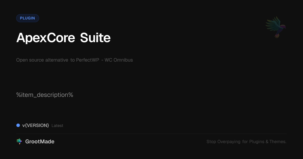 GrootMade is NOT affiliated with PerfectWP - WC Omnibus or its original author. PerfectWP - WC Omnibus™ is a trademark of its respective owner and use of it does not imply any endorsement or affiliation. This product has been forked under the GNU General Public License (GPL) and all non-GPL assets (such as proprietary images, fonts, and branding) have been removed. Distributing GPL-licensed code is 100% legal.