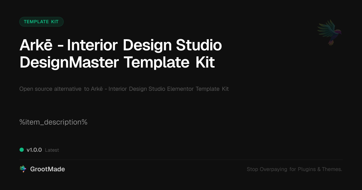GrootMade is NOT affiliated with Arkē - Interior Design Studio Elementor Template Kit or its original author. Arkē - Interior Design Studio Elementor Template Kit™ is a trademark of its respective owner and use of it does not imply any endorsement or affiliation. This product has been forked under the GNU General Public License (GPL) and all non-GPL assets (such as proprietary images, fonts, and branding) have been removed. Distributing GPL-licensed code is 100% legal.
