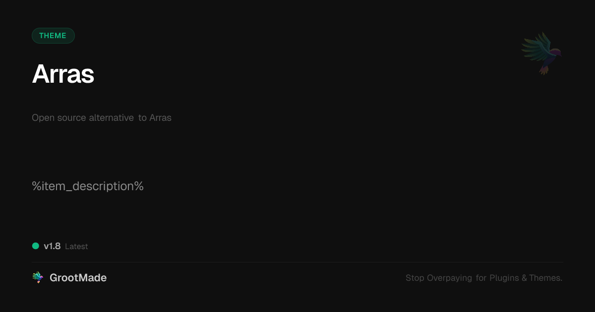 GrootMade is NOT affiliated with Arras or its original author. Arras™ is a trademark of its respective owner and use of it does not imply any endorsement or affiliation. This product has been forked under the GNU General Public License (GPL) and all non-GPL assets (such as proprietary images, fonts, and branding) have been removed. Distributing GPL-licensed code is 100% legal.