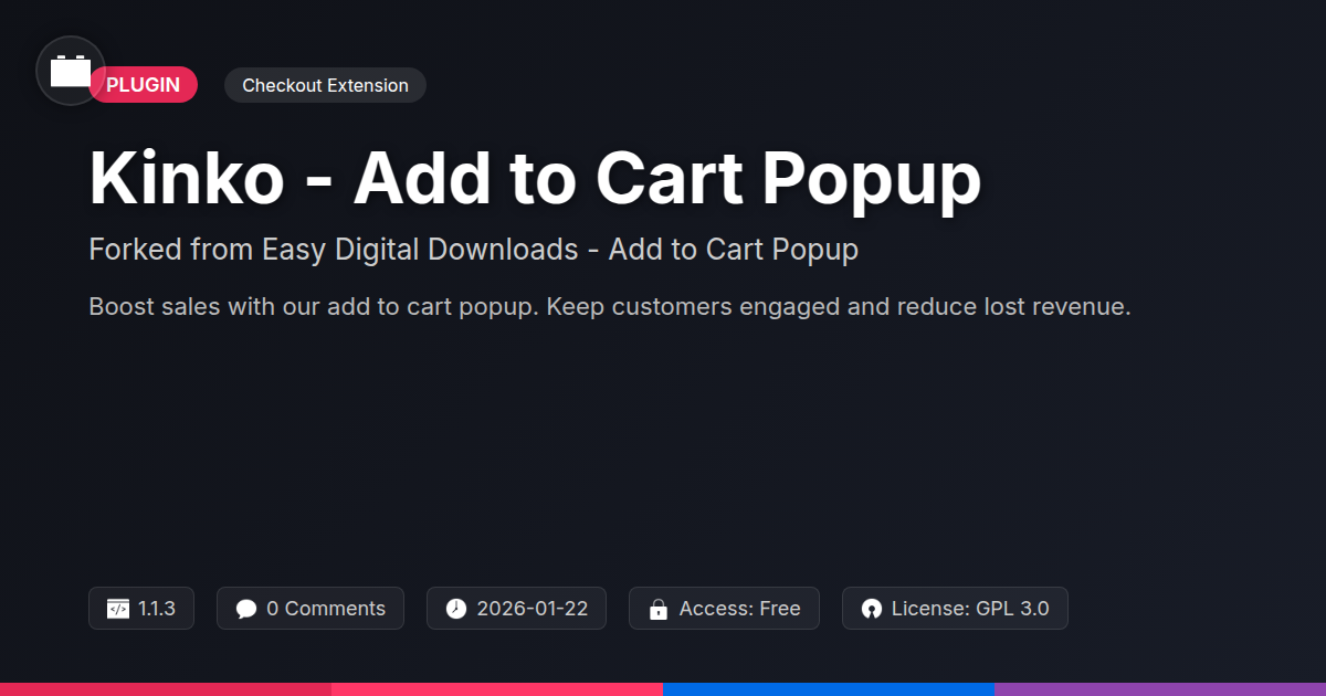 So, there you have it, digital merchants and code artisans. We've journeyed through the often-treacherous landscape of online sales, dodging the dreaded cart abandonment zombies and uncovering a rather elegant solution in the 'Kinko - Add to Cart Popup.' It's not about forcing a sale; it's about facilitating an experience, about guiding your potential customers with a gentle nudge rather than a shove off a cliff. For those of you who live and breathe by the principles of elegant code and seamless user journeys, this plugin is more than just a tool; it's a testament to how a little bit of thoughtful enhancement can make a world of difference. You're not just adding a popup; you're refining your checkout process, reducing friction, and ultimately, allowing your customers to complete their transactions with a bit more confidence and a lot less hesitation. Think of it as the polite concierge of your digital store, ensuring everyone finds their way to the checkout smoothly. So, whether you're a solo dev building your passion project or an agency looking to deliver maximum value to your clients, embracing a solution like Kinko means you're prioritizing the user experience, and in this crowded digital marketplace, that's a competitive edge that speaks volumes. Stop letting potential revenue slip through the cracks and start converting those browsers into buyers, one subtle, effective popup at a time.