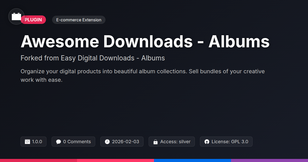 GrootMade is NOT affiliated with Easy Digital Downloads - Albums or its original author. Easy Digital Downloads - Albums™ is a trademark of its respective owner and use of it does not imply any endorsement or affiliation. This product has been forked under the GNU General Public License (GPL) and all non-GPL assets (such as proprietary images, fonts, and branding) have been removed. Distributing GPL-licensed code is 100% legal.