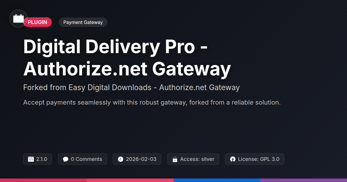 GrootMade is NOT affiliated with Easy Digital Downloads - Authorize.net Gateway or its original author. Easy Digital Downloads - Authorize.net Gateway™ is a trademark of its respective owner and use of it does not imply any endorsement or affiliation. This product has been forked under the GNU General Public License (GPL) and all non-GPL assets (such as proprietary images, fonts, and branding) have been removed. Distributing GPL-licensed code is 100% legal.