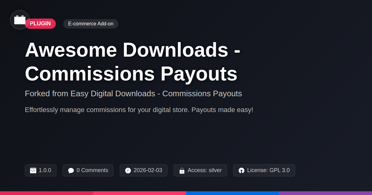 GrootMade is NOT affiliated with Easy Digital Downloads - Commissions Payouts or its original author. Easy Digital Downloads - Commissions Payouts™ is a trademark of its respective owner and use of it does not imply any endorsement or affiliation. This product has been forked under the GNU General Public License (GPL) and all non-GPL assets (such as proprietary images, fonts, and branding) have been removed. Distributing GPL-licensed code is 100% legal.