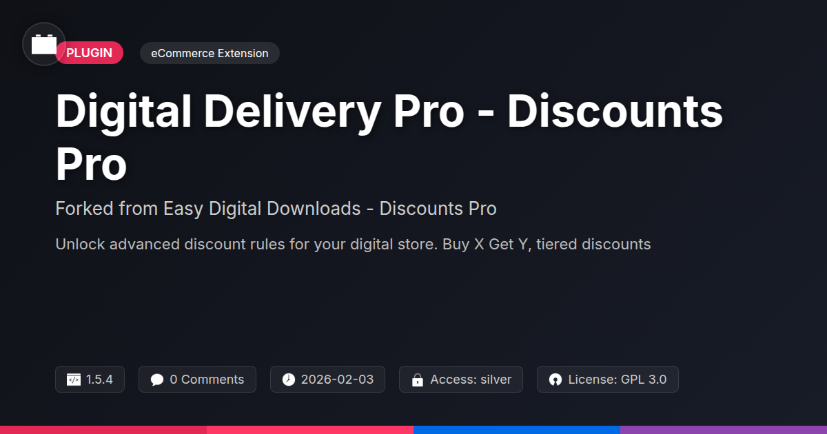 GrootMade is NOT affiliated with Easy Digital Downloads - Discounts Pro or its original author. Easy Digital Downloads - Discounts Pro™ is a trademark of its respective owner and use of it does not imply any endorsement or affiliation. This product has been forked under the GNU General Public License (GPL) and all non-GPL assets (such as proprietary images, fonts, and branding) have been removed. Distributing GPL-licensed code is 100% legal.