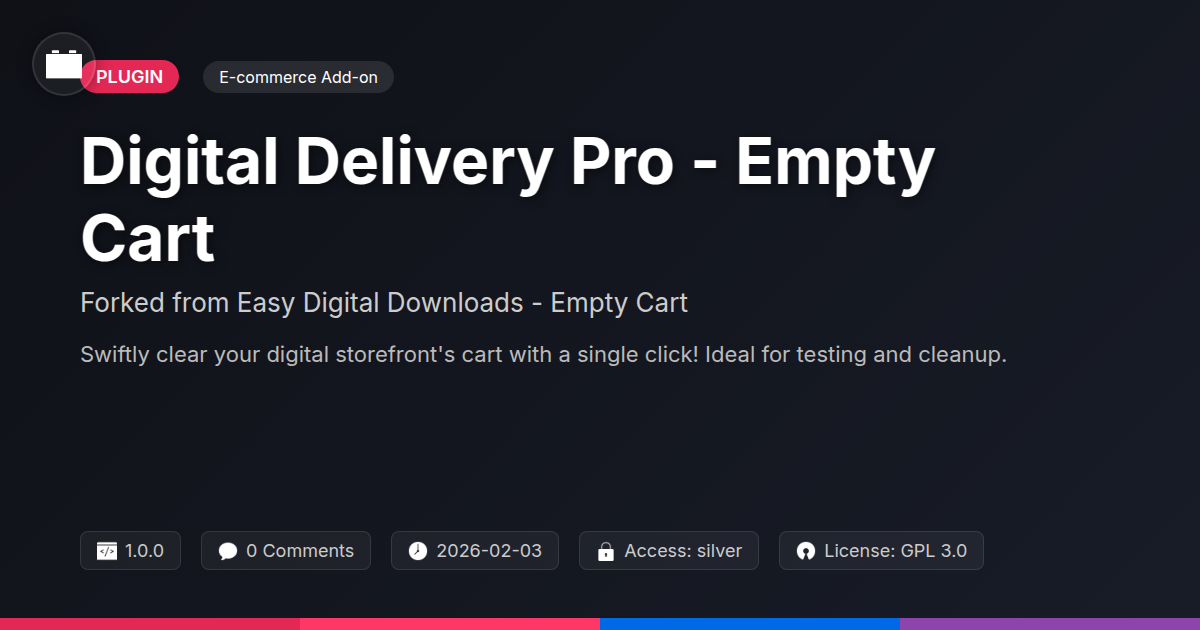 So, there you have it. The humble yet mighty Digital Delivery Pro - Empty Cart. It’s the digital equivalent of a deep breath of fresh air for your online store. No more wrestling with stubborn items lingering in the checkout queue, no more tedious manual deletions before a critical test. We've all been on the receiving end of a client saying, "Can you just quickly clear that?" and then spending the next ten minutes clicking through a virtual carousel of digital goods. This plugin puts an end to that madness. It's built for those of us who appreciate efficiency, who understand that sometimes the best feature is the one that just works, silently and effectively in the background. For developers and agencies, it's not just a convenience; it's a time-saver, a sanity-preserver, and a tool that allows you to focus on what truly matters: building awesome digital experiences. It respects the original, robust functionality but, like any good fork in the open-source world, hints at exciting possibilities for those who want to push the envelope. Whether you're meticulously testing a new payment gateway, prepping a demo for a discerning client, or simply want to ensure your users always start with a clean shopping slate, this plugin has your back. It’s a small addition, but in the grand scheme of running a smooth-running digital shop, it’s the kind of detail that makes a big difference. Embrace the simplicity, reclaim your time, and keep those digital carts as clean as your code.