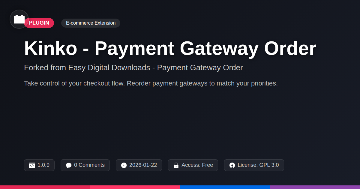 So, are you still wrestling with that prehistoric payment system, or are you ready to upgrade to a solution that actually respects your time and your sanity? Kinko - Payment Gateway Order is more than just a plugin; it’s your digital sales sidekick, born from a lineage of reliability and infused with a spirit of innovation that speaks directly to developers, agencies, and anyone who proudly waves the open-source flag. Forget those arcane configurations that leave you questioning your life choices. Kinko brings clarity, flexibility, and a much-needed dose of developer-centric design to the often-grimy world of online transactions. It’s the kind of tool that makes you pause and think, “Wow, they actually got it.” You can poke around its clean code, tailor it to your exact needs, and contribute to a project that’s all about empowering creators. Think of it as your secret weapon for smoother checkouts, happier customers, and ultimately, a more profitable digital empire. It's time to stop accepting payment processing headaches as the norm and embrace a solution that’s built for the modern web, with a wink and a nod to the developers who make it all happen. Give Kinko a whirl – your future self (and your bank account) will thank you.