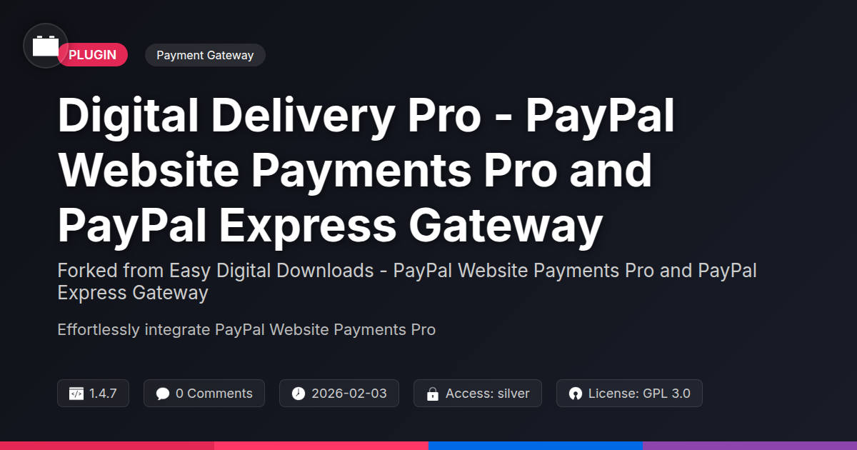 GrootMade is NOT affiliated with Easy Digital Downloads - PayPal Website Payments Pro and PayPal Express Gateway or its original author. Easy Digital Downloads - PayPal Website Payments Pro and PayPal Express Gateway™ is a trademark of its respective owner and use of it does not imply any endorsement or affiliation. This product has been forked under the GNU General Public License (GPL) and all non-GPL assets (such as proprietary images, fonts, and branding) have been removed. Distributing GPL-licensed code is 100% legal.