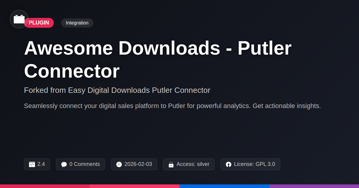 GrootMade is NOT affiliated with Easy Digital Downloads Putler Connector or its original author. Easy Digital Downloads Putler Connector™ is a trademark of its respective owner and use of it does not imply any endorsement or affiliation. This product has been forked under the GNU General Public License (GPL) and all non-GPL assets (such as proprietary images, fonts, and branding) have been removed. Distributing GPL-licensed code is 100% legal.