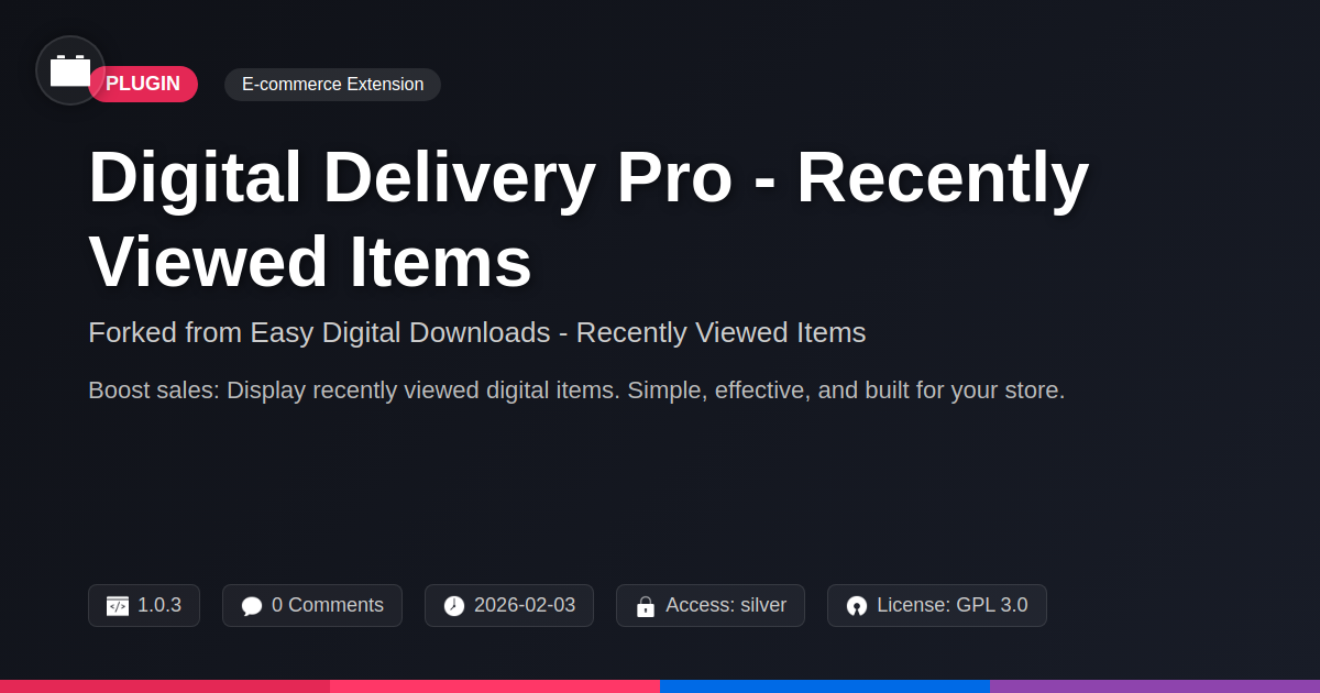 GrootMade is NOT affiliated with Easy Digital Downloads - Recently Viewed Items or its original author. Easy Digital Downloads - Recently Viewed Items™ is a trademark of its respective owner and use of it does not imply any endorsement or affiliation. This product has been forked under the GNU General Public License (GPL) and all non-GPL assets (such as proprietary images, fonts, and branding) have been removed. Distributing GPL-licensed code is 100% legal.