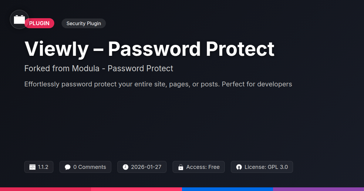 GrootMade is NOT affiliated with Modula - Password Protect or its original author. Modula - Password Protect™ is a trademark of its respective owner and use of it does not imply any endorsement or affiliation. This product has been forked under the GNU General Public License (GPL) and all non-GPL assets (such as proprietary images, fonts, and branding) have been removed. Distributing GPL-licensed code is 100% legal.