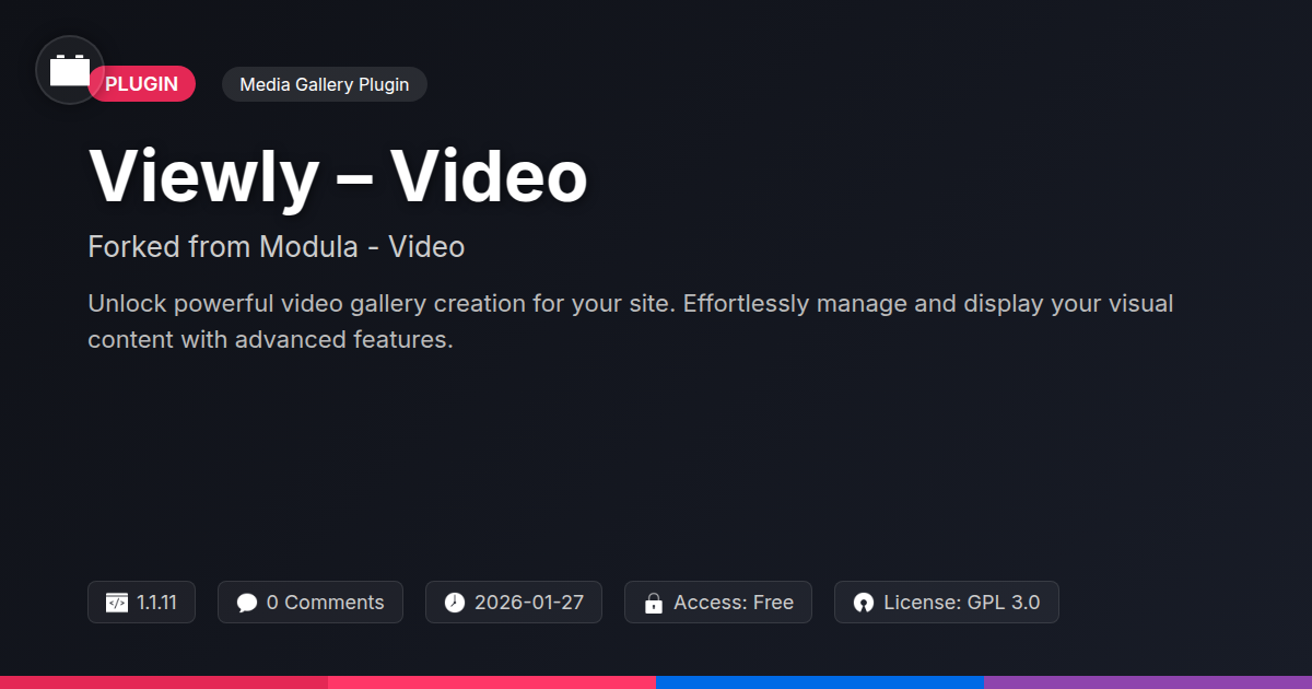 GrootMade is NOT affiliated with Modula - Video or its original author. Modula - Video™ is a trademark of its respective owner and use of it does not imply any endorsement or affiliation. This product has been forked under the GNU General Public License (GPL) and all non-GPL assets (such as proprietary images, fonts, and branding) have been removed. Distributing GPL-licensed code is 100% legal.