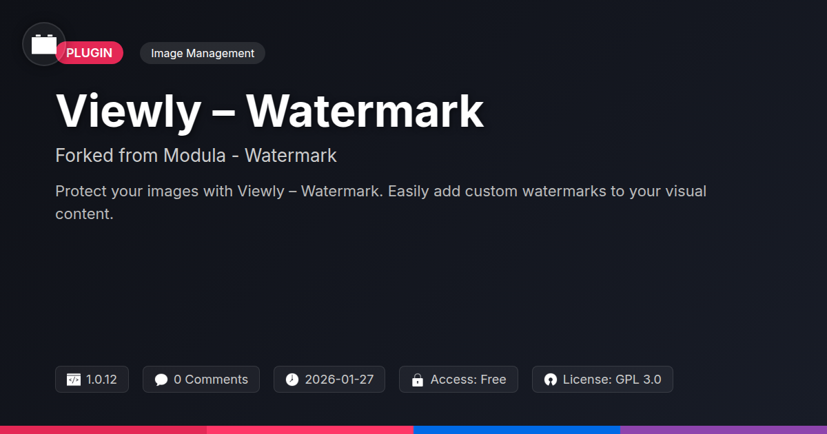 GrootMade is NOT affiliated with Modula - Watermark or its original author. Modula - Watermark™ is a trademark of its respective owner and use of it does not imply any endorsement or affiliation. This product has been forked under the GNU General Public License (GPL) and all non-GPL assets (such as proprietary images, fonts, and branding) have been removed. Distributing GPL-licensed code is 100% legal.