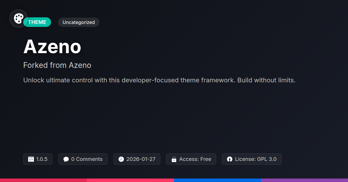 GrootMade is NOT affiliated with Azeno or its original author. Azeno™ is a trademark of its respective owner and use of it does not imply any endorsement or affiliation. This product has been forked under the GNU General Public License (GPL) and all non-GPL assets (such as proprietary images, fonts, and branding) have been removed. Distributing GPL-licensed code is 100% legal.