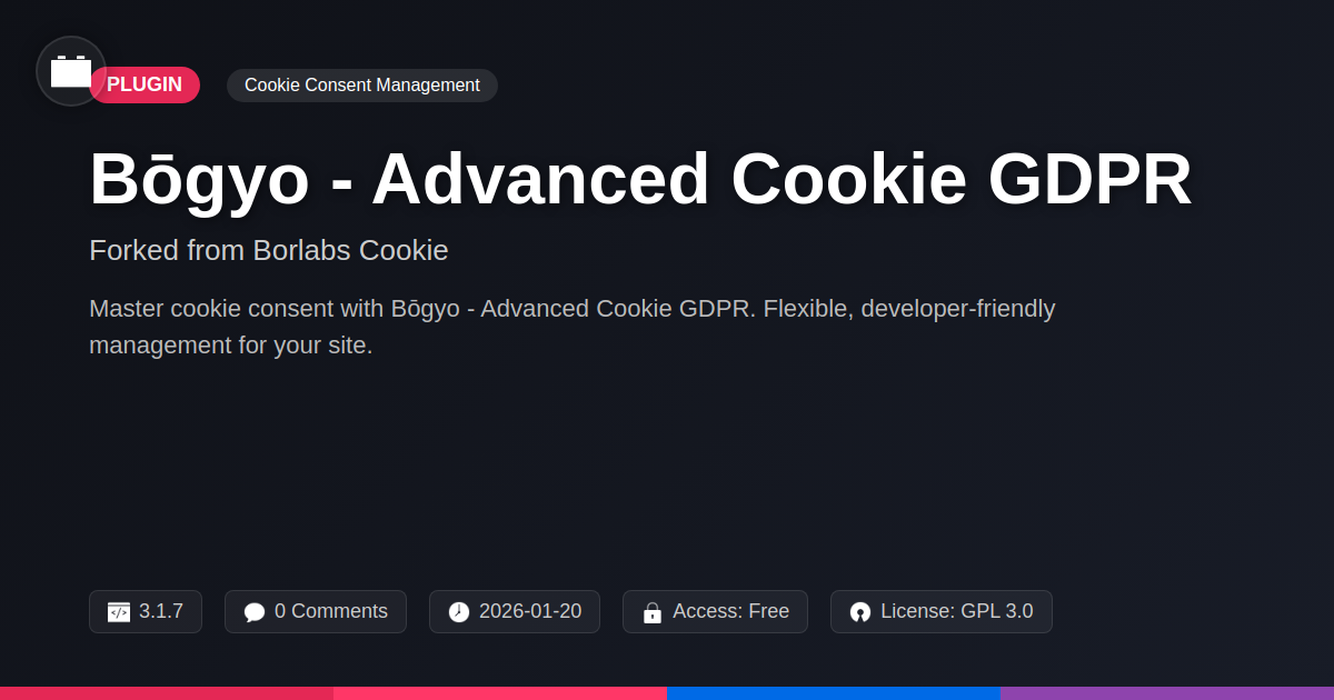 You recognize the limitations of basic cookie tools. Introducing Bōgyo - Advanced Cookie. This is not merely an update. It's a strategic evolution. Bōgyo descends from a respected lineage of privacy management systems. We took a strong foundation and refined it. Our focus is clear: unparalleled flexibility. Developers and agencies need more. They need a tool that understands complexity. Bōgyo offers a developer-centric approach. It empowers you with deep customization. This is more than a plugin. It's a robust engine for privacy. It ensures complete control over user consent. You've sought a powerful ally. You've found your secret weapon for privacy. Bōgyo is designed for your demanding needs.