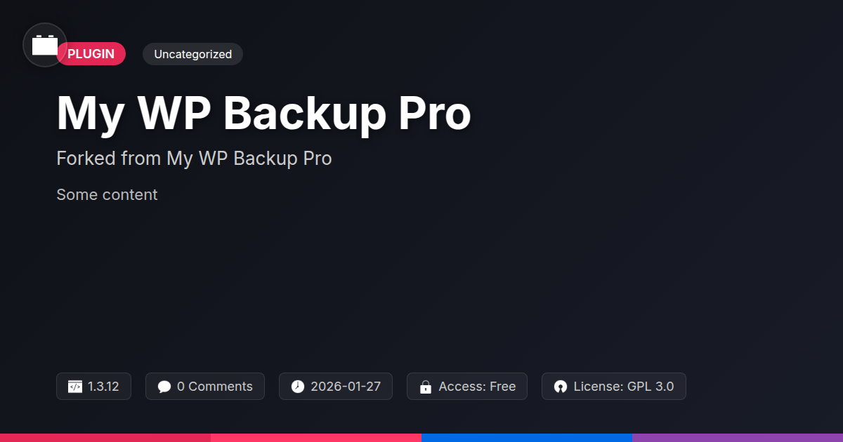 GrootMade is NOT affiliated with My WP Backup Pro or its original author. My WP Backup Pro™ is a trademark of its respective owner and use of it does not imply any endorsement or affiliation. This product has been forked under the GNU General Public License (GPL) and all non-GPL assets (such as proprietary images, fonts, and branding) have been removed. Distributing GPL-licensed code is 100% legal.
