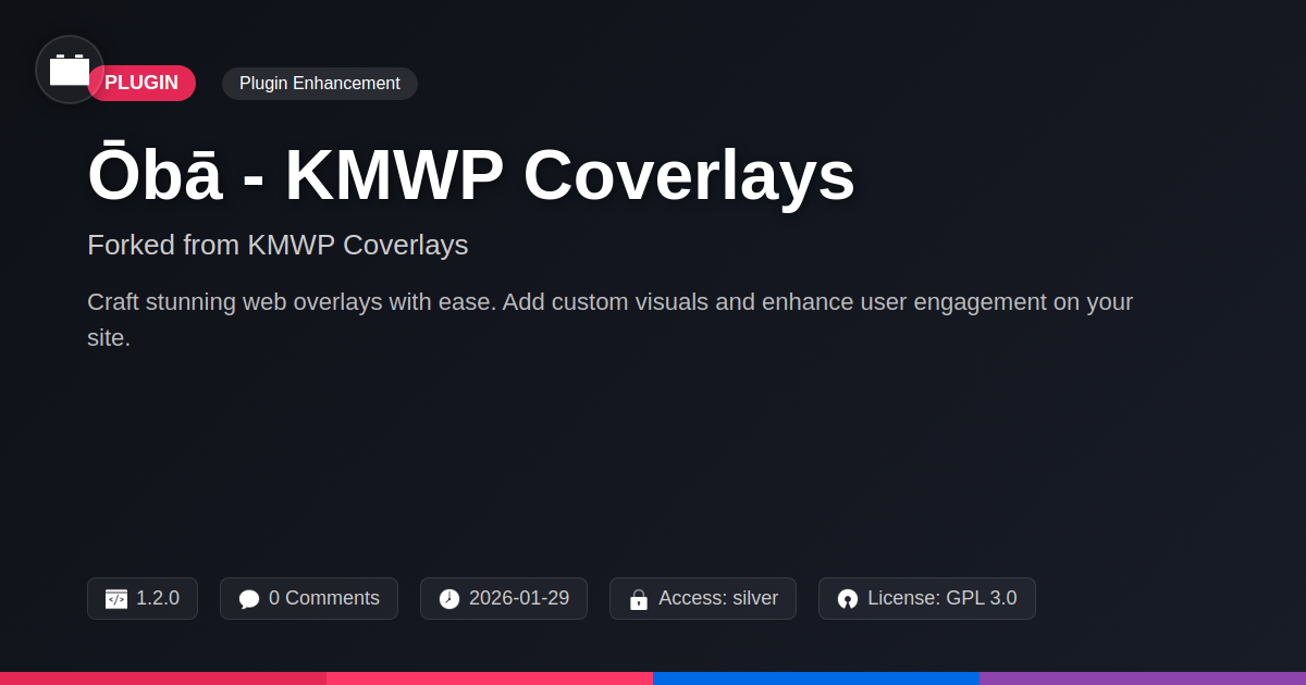 So, there you have it. If you’ve ever felt the digital designer’s equivalent of a lukewarm cup of coffee while browsing the web, you’ll understand the yearning for tools that inject a bit of life, a dash of flair, and a whole lot of functionality. Ōbā - KMWP Coverlays & Overlays isn't just another plugin; it’s a statement. It’s for the builders, the tinkerers, the agencies who understand that presentation is half the battle, and for the open-source aficionados who believe in the power of community-driven innovation. It’s about taking a robust framework, lovingly forking it, and steering it towards an even brighter future, all while keeping the core philosophy of empowering you intact.
