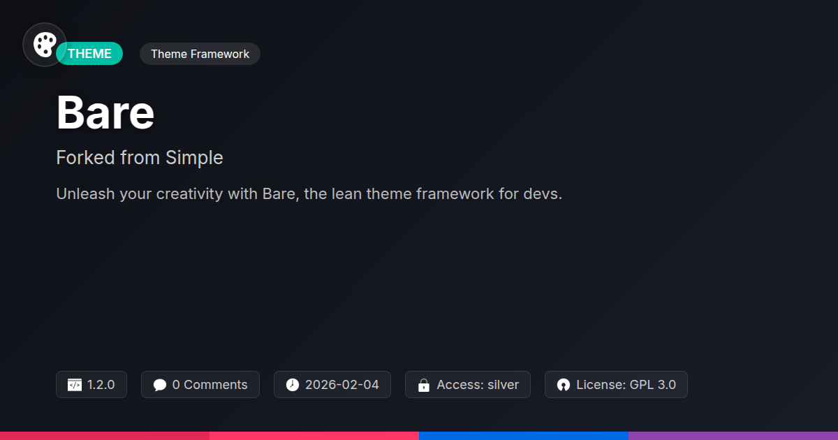 So, you've navigated the labyrinth of themes, dodged the bullet points of impossible promises, and are left questioning if true simplicity and power can coexist in a single package. The answer, my fellow code wranglers and design wizards, is a resounding 'yes,' and its name is Bare. We’ve peeled back the layers of unnecessary complexity, exposing a core that’s as robust as it is remarkably lean. Think of it as the difference between a Swiss Army knife with a thousand questionable attachments and a perfectly forged chef's knife – both have their place, but one is unequivocally built for precision and mastery. Bare is that masterful tool for the discerning developer. It's not about offering a million options that will never be used; it's about providing the essential, high-quality controls you need to build something truly exceptional. Whether you're crafting a bespoke site for a high-profile client, orchestrating an agency's diverse portfolio, or simply indulging your passion for elegant open-source solutions, Bare offers a foundation that respects your craft. It’s the canvas that allows your creativity to shine, unhindered by technical debt or performance bottlenecks. Remember those frustrating hours spent tweaking settings that have no earthly purpose? Or the sinking feeling when a site update breaks your carefully constructed layout? Bare is here to banish those specters. It’s an investment in efficiency, a commitment to quality, and a testament to the fact that sometimes, less truly is more. So, step away from the feature bloat and embrace the power of pragmatism. Bare is more than just a theme framework; it's a philosophy for building better, faster, and more beautifully.
