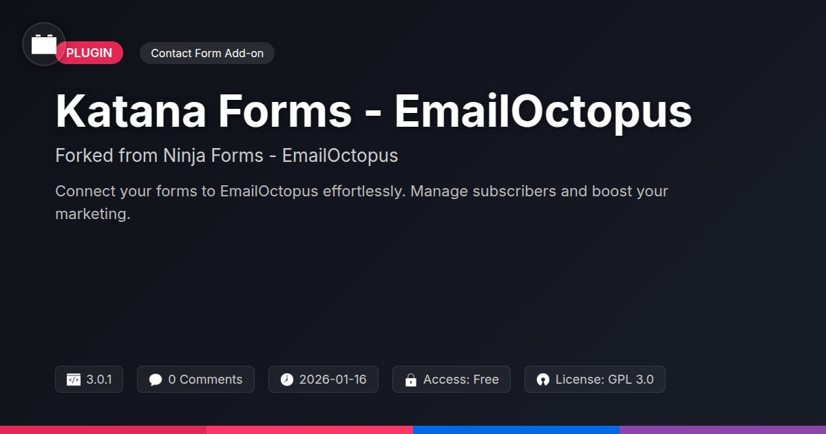 For those who build and innovate, we speak your language. We honor the solid groundwork laid by the original integration. That legacy of quality continues. Katana Forms - EmailOctopus embraces that spirit. It's a thoughtful evolution. We champion flexibility. There's no vendor lock-in here. This isn't a closed system. It works as an add-on. It enhances your existing form builder. Enjoy maximum customization. Integrate seamlessly. No need for complete overhauls. Transparency is key. Community-driven potential flourishes. It's a well-maintained fork. Reliable principles guide us. We offer the freedom you need. This tool is dependable. It's been sharpened. It's ready for your next project.
