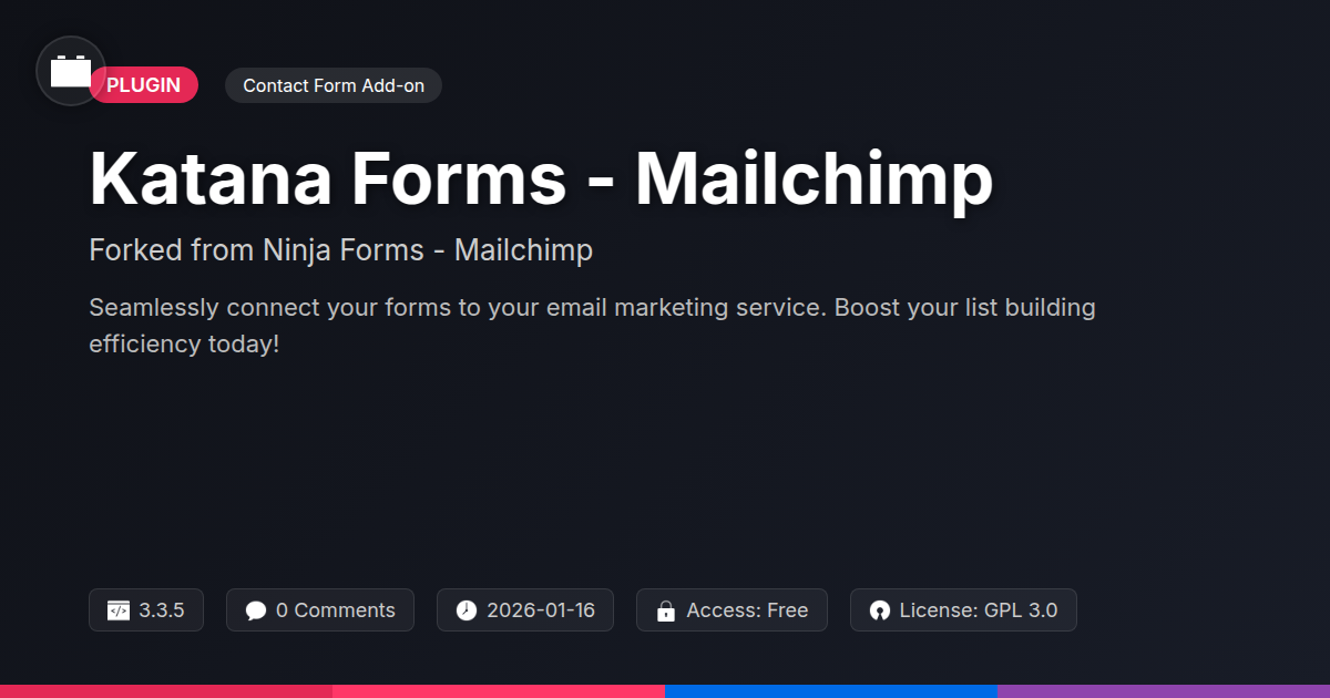 Sick of manually copying and pasting email addresses from your website forms into your beloved email marketing service? Does the thought of another tedious export/import session make you want to throw your monitor out the window? Well, dust off that monitor, because there’s a better way. We’ve taken a beloved, open-source form-building powerhouse and supercharged it with a direct line to your favorite email marketing platform. Think of it as giving your forms a direct, high-speed rail ticket to your subscriber list, bypassing all the bureaucratic red tape. This isn't just about saving time; it's about streamlining your lead generation process so you can focus on what truly matters: crafting amazing campaigns and delighting your subscribers. For developers who appreciate elegant solutions and agencies who crave efficiency, this integration is a no-brainer. And for the open-source fanatics among us, you know we love a good fork that enhances functionality without compromising freedom. Get ready to connect your forms to your email marketing like never before, with features and flexibility that’ll make you wonder how you ever lived without it. Let’s make list building less of a chore and more of a… well, let’s just say a lot less painful.