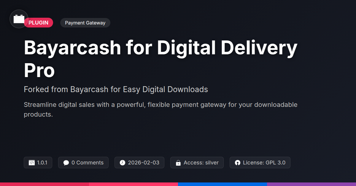 GrootMade is NOT affiliated with Bayarcash for Easy Digital Downloads or its original author. Bayarcash for Easy Digital Downloads™ is a trademark of its respective owner and use of it does not imply any endorsement or affiliation. This product has been forked under the GNU General Public License (GPL) and all non-GPL assets (such as proprietary images, fonts, and branding) have been removed. Distributing GPL-licensed code is 100% legal.