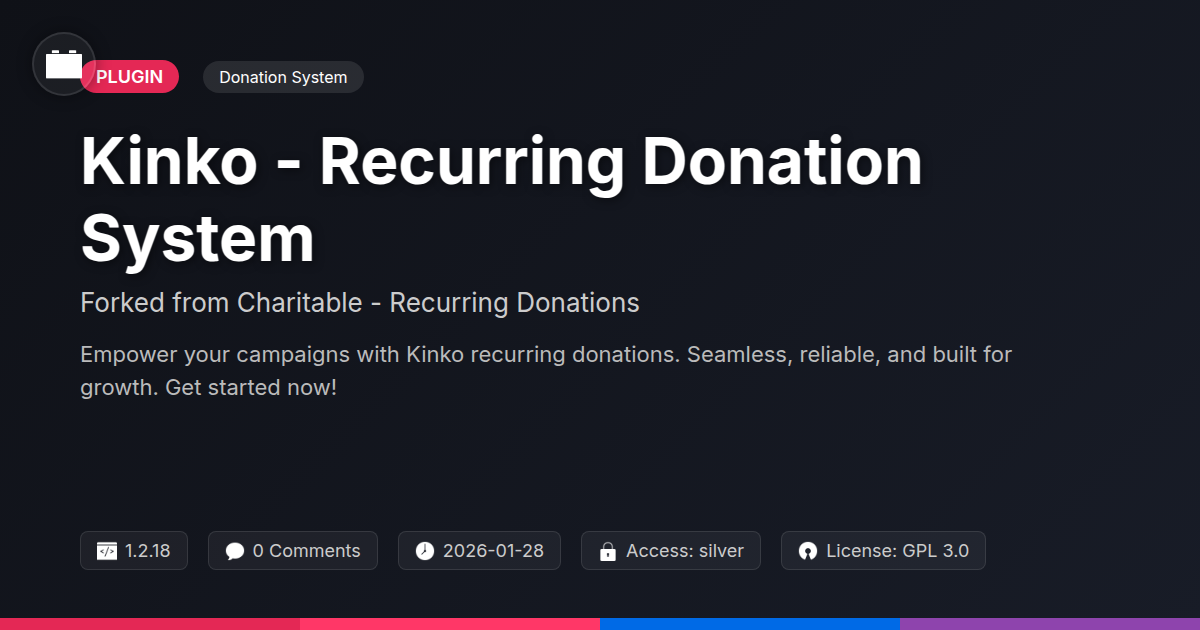 So, are you still staring at your donation analytics wondering why they resemble a particularly volatile stock market chart? It’s time to ditch the unpredictable and embrace the sustainable. Kinko - Recurring Donation System isn't just another plugin; it's your new best friend in the quest for consistent, reliable funding. Think of it as the steady hum of a well-tuned engine powering your mission, rather than the sputtering cough of a car running on fumes. For the pragmatists out there, the data speaks for itself: recurring donations are the bedrock of long-term financial health for any cause. They allow for better planning, more impactful projects, and frankly, a lot less stress for you and your team. Developers will appreciate the clean code and extensible architecture, agencies will find a reliable tool to offer their clients, and seasoned open-source aficionados will recognize the commitment to transparency and community-driven enhancement. It’s the sensible, strategic choice for anyone serious about maximizing their impact. Don't let another crucial project be stalled by a donation drought. Embrace the power of predictable revenue, foster deeper relationships with your supporters, and watch your organization flourish. Kinko is ready to help you build that stronger, more stable future, one recurring donation at a time.