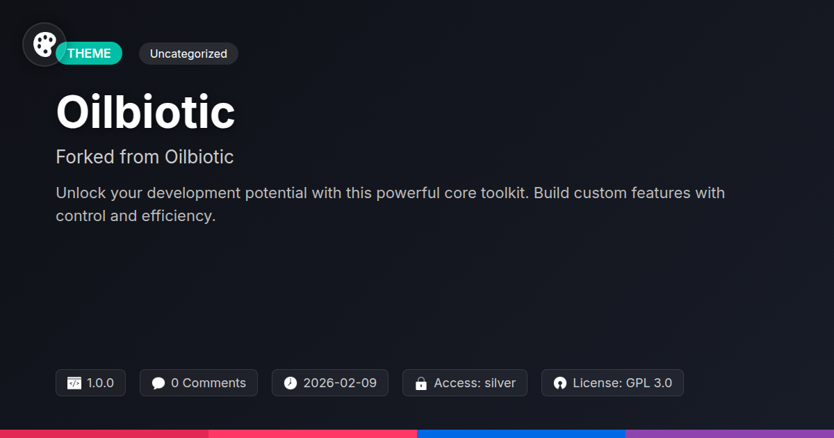 GrootMade is NOT affiliated with Oilbiotic or its original author. Oilbiotic™ is a trademark of its respective owner and use of it does not imply any endorsement or affiliation. This product has been forked under the GNU General Public License (GPL) and all non-GPL assets (such as proprietary images, fonts, and branding) have been removed. Distributing GPL-licensed code is 100% legal.
