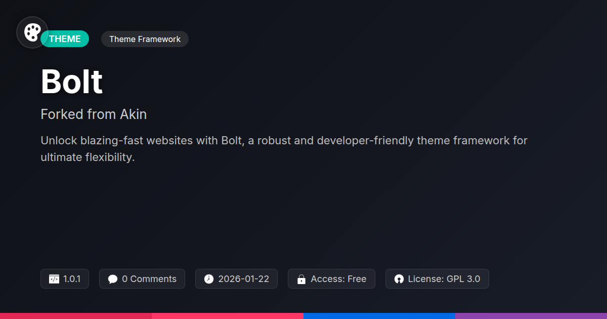 Ever felt like wrestling an octopus to build a simple website? We get it. The digital landscape is littered with themes so bloated, they make a Thanksgiving dinner look lean. Developers, you know the drill. Endless lines of code. Unused features. Performance nightmares. It's enough to make you weep into your keyboard. That's where Bolt steps in. Imagine a solid, open-source foundation. Then imagine taking that engine, meticulously tuning it, and stripping away all the unnecessary baggage. That’s not a weakness; it’s a strategic evolution. We ‘forked’ not to reinvent the wheel, but to refine it. To create an experience where ‘less is more.’ Where every line of code serves a purpose. Bolt is built on that philosophy. A commitment to a clean, performant core allows for true creativity. No more fighting your tools. Just pure, unadulterated building. Welcome to the future of sensible theme development.