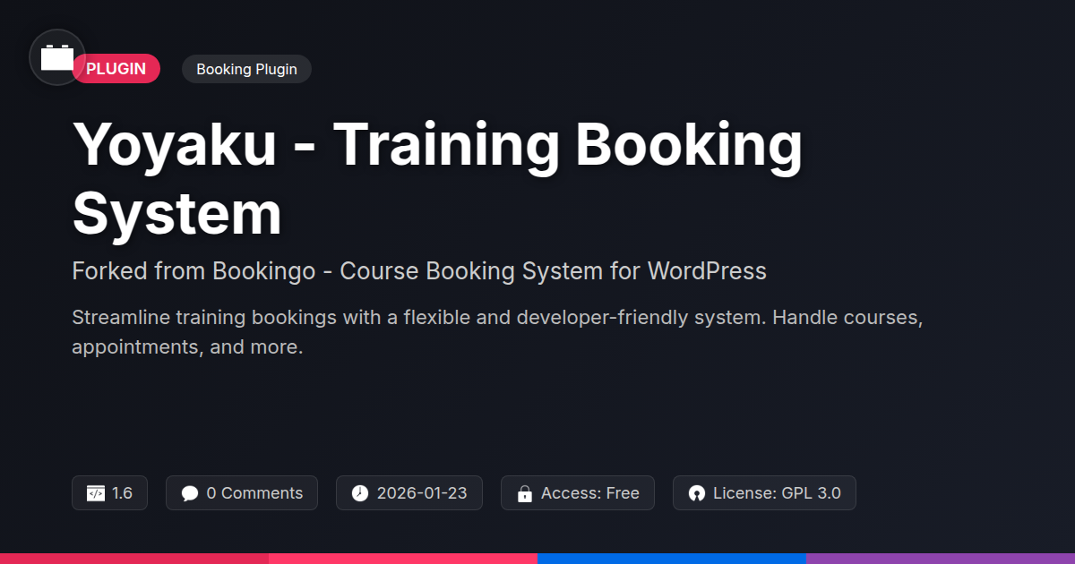 So, there you have it. Yoyaku. It’s not just another booking plugin; it’s the digital equivalent of finding out your notoriously difficult client project actually has a ridiculously well-structured API. We’ve taken a proven foundation, sprinkled it with a healthy dose of developer-centric enhancements, and served it up with a side of much-needed sarcasm. No more wrestling with systems that feel like they were designed by committee during a particularly grueling game of telephone. You're a developer, an agency owner, or an open-source aficionado. You appreciate elegant solutions, you understand the power of a well-forked codebase, and frankly, you've got better things to do than debug a booking system that’s actively trying to sabotage your sanity. Yoyaku is built for you. It’s designed to be robust, flexible, and, dare we say, a little bit enjoyable to implement. It’s about giving you the tools to manage training bookings efficiently, impress your clients with seamless functionality, and maybe even get a good night’s sleep. So, ditch the makeshift solutions and the overly complicated scripts. It's time to embrace a booking system that works with you, not against you. Give Yoyaku a spin, and discover how much simpler (and funnier) managing training bookings can be.