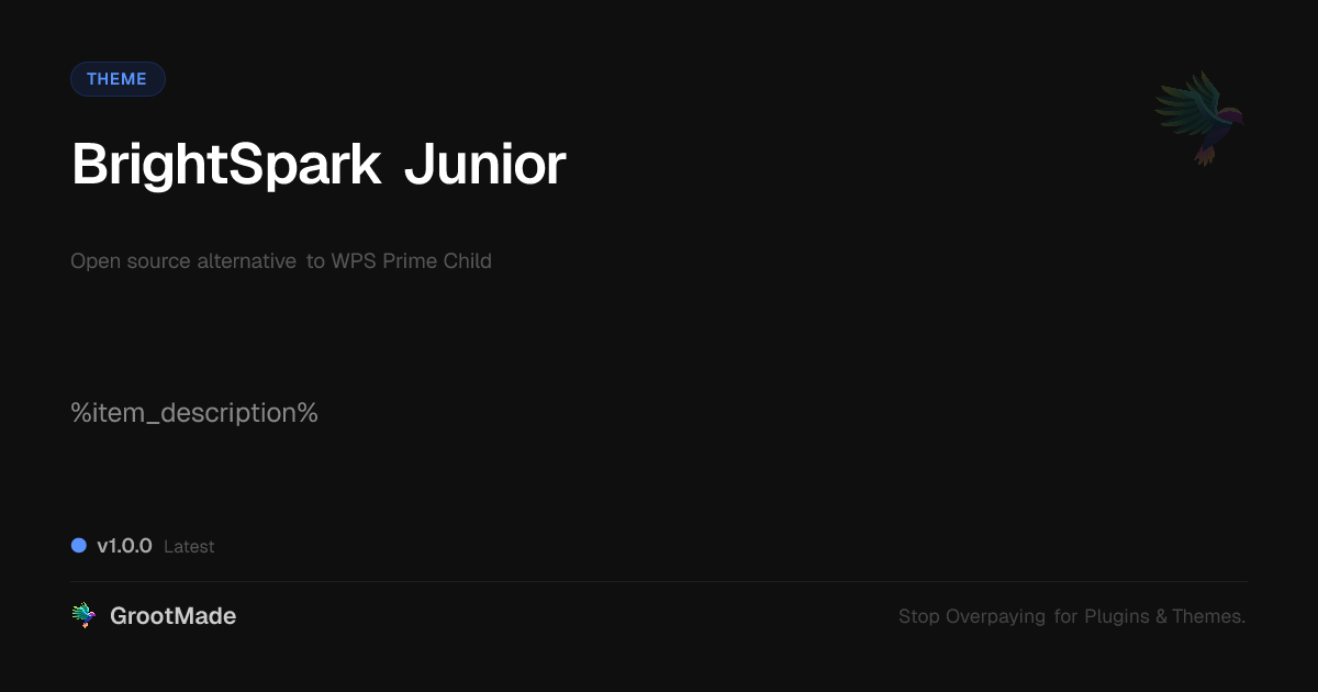 GrootMade is NOT affiliated with WPS Prime Child or its original author. WPS Prime Child™ is a trademark of its respective owner and use of it does not imply any endorsement or affiliation. This product has been forked under the GNU General Public License (GPL) and all non-GPL assets (such as proprietary images, fonts, and branding) have been removed. Distributing GPL-licensed code is 100% legal.