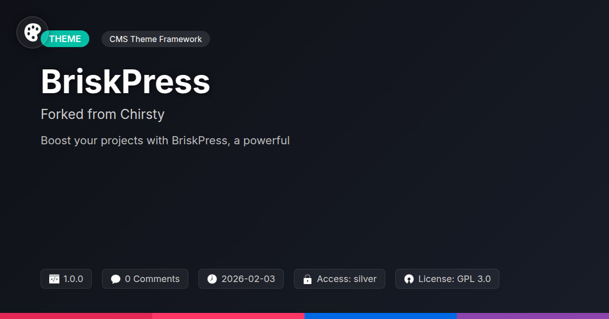 BriskPress is an invitation to build smarter, build faster, and build with confidence. It’s about taking a proven legacy and propelling it forward with purpose. So, go ahead. Dive in. Explore. Contribute. Build something magnificent. Your next masterpiece awaits, and with BriskPress as your foundation, you’ve just leveled up the playing field. It’s time to stop fighting your tools and start creating with them.