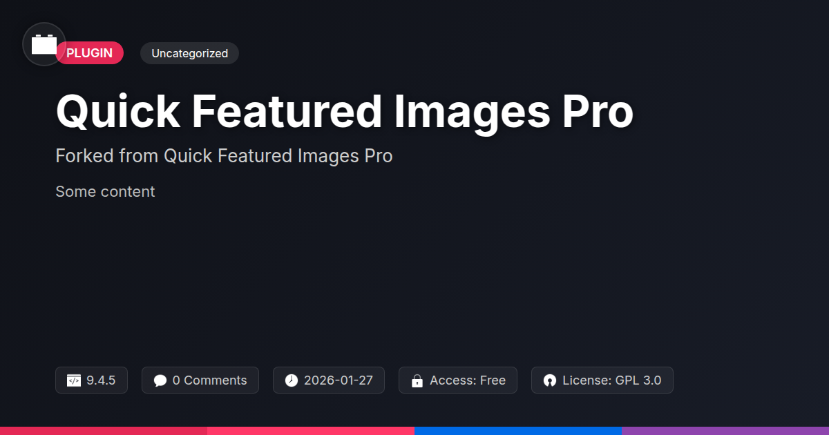 GrootMade is NOT affiliated with Quick Featured Images Pro or its original author. Quick Featured Images Pro™ is a trademark of its respective owner and use of it does not imply any endorsement or affiliation. This product has been forked under the GNU General Public License (GPL) and all non-GPL assets (such as proprietary images, fonts, and branding) have been removed. Distributing GPL-licensed code is 100% legal.
