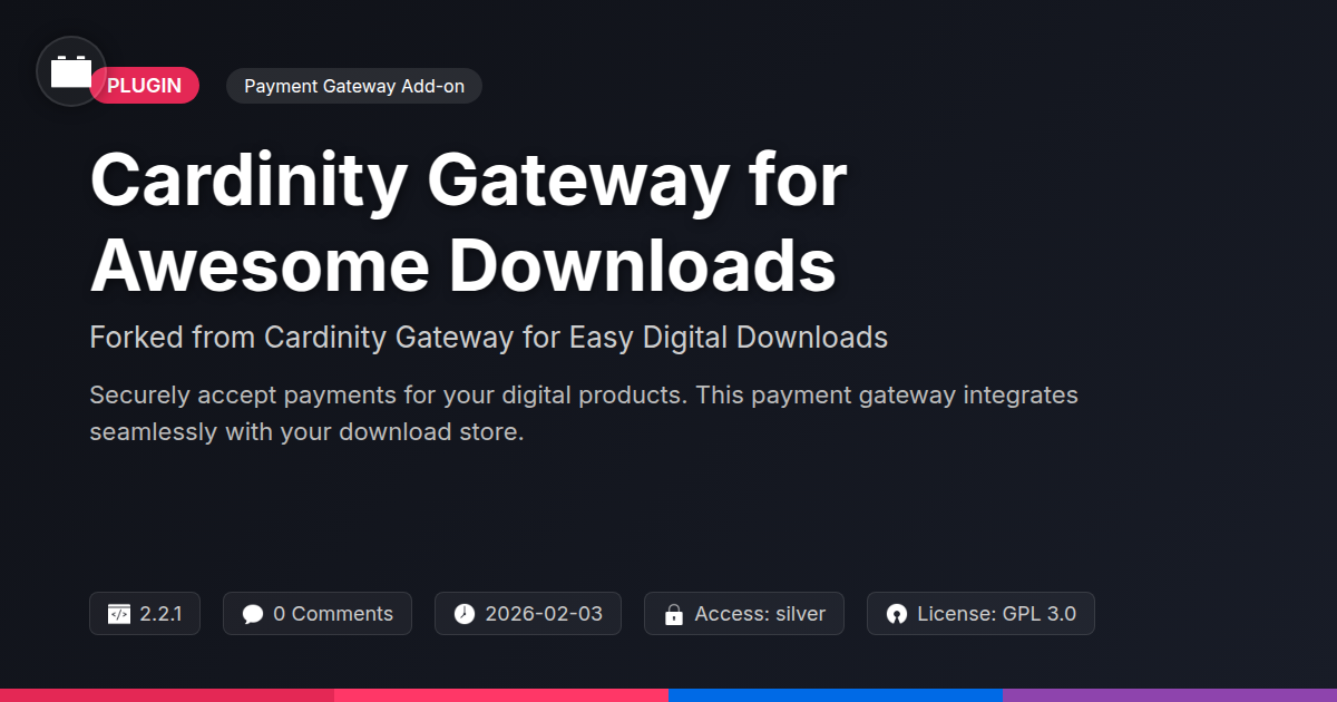 GrootMade is NOT affiliated with Cardinity Gateway for Easy Digital Downloads or its original author. Cardinity Gateway for Easy Digital Downloads™ is a trademark of its respective owner and use of it does not imply any endorsement or affiliation. This product has been forked under the GNU General Public License (GPL) and all non-GPL assets (such as proprietary images, fonts, and branding) have been removed. Distributing GPL-licensed code is 100% legal.