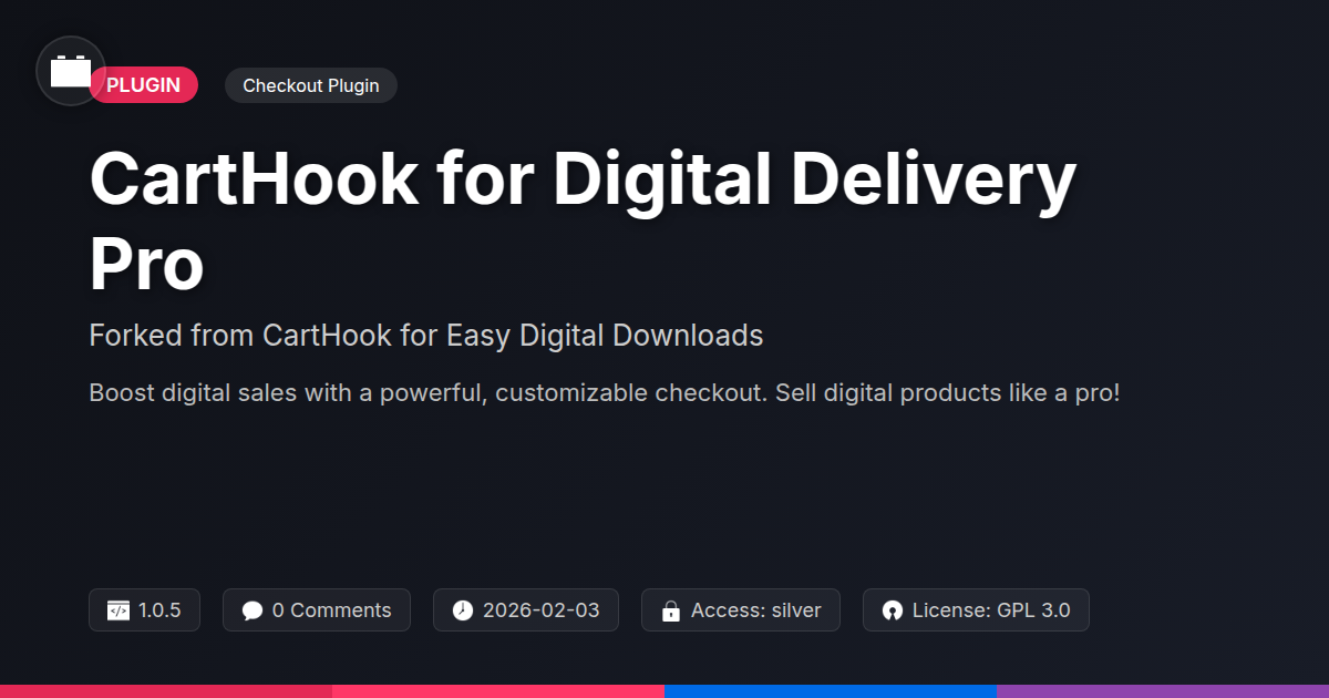 GrootMade is NOT affiliated with CartHook for Easy Digital Downloads or its original author. CartHook for Easy Digital Downloads™ is a trademark of its respective owner and use of it does not imply any endorsement or affiliation. This product has been forked under the GNU General Public License (GPL) and all non-GPL assets (such as proprietary images, fonts, and branding) have been removed. Distributing GPL-licensed code is 100% legal.
