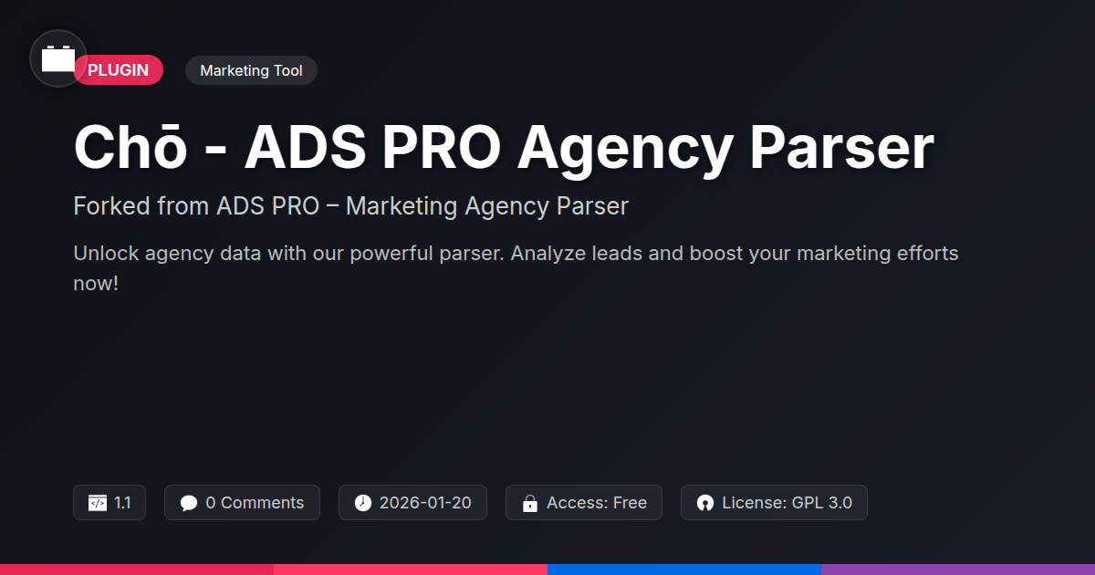 So, there you have it. No more wrestling with digital spaghetti or playing data whack-a-mole. You've seen how Chō - ADS PRO Agency Parser, that clever descendant of a solid original, is here to liberate you from the soul-crushing tedium of manual data extraction. For those of you who believe your brain cells are better utilized conjuring brilliant code, architecting killer campaigns, or championing the open-source ethos, this tool is your digital knight in slightly sarcastic armor. It's not just about parsing; it’s about reclaiming your precious time and mental energy. Think of it as your personal data butler, silently and efficiently gathering the intel you need so you can focus on what truly matters: innovation, strategy, and maybe even a little bit of world domination (or at least, market domination). The beauty of this 'forked' marvel lies in its lineage – a testament to solid engineering with the added bonus of continuous refinement and adaptability. It’s robust enough for the most demanding agencies and tweakable enough for the most discerning developers. Plus, embracing a tool that’s, well, inspired by open-source principles just feels right, doesn't it? It’s a nod to collaboration, evolution, and the sheer joy of making technology work for us, not against us. So, ditch the spreadsheets, silence the data dragons, and let Chō handle the heavy lifting. Get ready to parse smarter, act faster, and maybe even impress your clients with your newfound data-wrangling prowess. The future of efficient data analysis is here, and it’s surprisingly amusing.