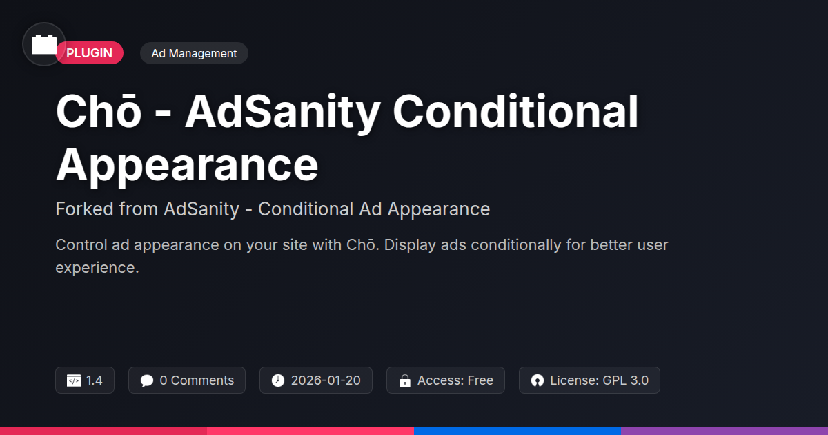 So there you have it, folks. The era of the 'spray and pray' ad placement is officially over, much to the relief of your users and, let's be honest, your sanity. Chō - AdSanity Conditional Appearance isn't just another plugin; it's your new digital ad whisperer, ensuring that every ad served is not just seen, but understood. We've armed you with the tools to transform your website's advertising from a potential irritant into a seamless, contextually relevant part of the user experience. For developers, this means less time debugging random ad behavior and more time building awesome things. For agencies, it translates to delivering more sophisticated, data-driven solutions to your clients, proving your worth beyond just slapping banners everywhere. And for the open-source lovers among us, it’s a testament to what can be achieved when a community comes together to improve upon a great foundation.