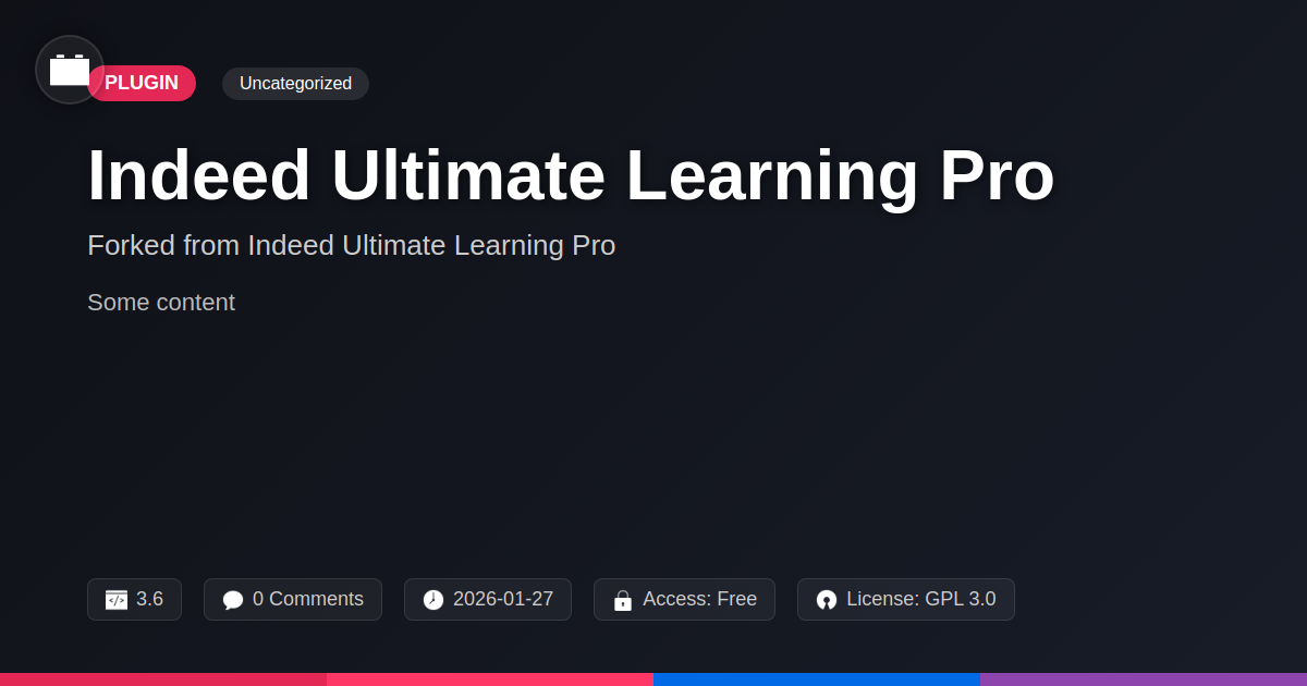 GrootMade is NOT affiliated with Indeed Ultimate Learning Pro or its original author. Indeed Ultimate Learning Pro™ is a trademark of its respective owner and use of it does not imply any endorsement or affiliation. This product has been forked under the GNU General Public License (GPL) and all non-GPL assets (such as proprietary images, fonts, and branding) have been removed. Distributing GPL-licensed code is 100% legal.