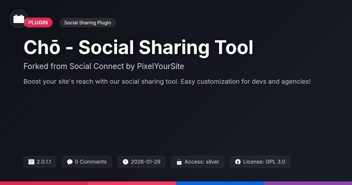 So, there you have it – Chō, the social sharing tool that understands the nuanced demands of the modern web developer, the discerning agency, and the passionate open-source advocate. We’ve journeyed from the existential dread of unshared content to the elegant triumph of a tool built with purpose and a wink. You’re no longer beholden to clunky, bloated plugins that treat your site like a dumping ground for unnecessary code. With Chō, you’re getting a meticulously crafted solution that’s not only performant but also a joy to customize and integrate. It’s about empowering you to amplify your content’s reach without compromising your site’s integrity or your sanity. Remember that feeling when you find that perfect snippet of code that just works? Chō is that feeling, but for your entire social sharing strategy. It’s a testament to the power of smart design, built on a solid foundation, and ready for you to bend to your will. Whether you're managing a horde of client sites or trying to get your own masterpiece seen, Chō is your reliable ally. It’s time to stop just publishing content and start launching it. Embrace the power of smart sharing.