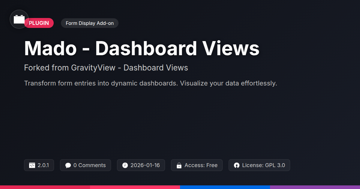 So, what exactly is Mado - Dashboard Views? Imagine a powerful data display engine, freshly refined. It’s built for flexibility. You can create custom views from your submitted data. Easily display this information in tables or lists. Simple charts are also an option. Control exactly what data appears. Developers and agencies can build client portals. Create internal reporting dashboards too. Simple directories are also within reach. This means no custom display code is needed. It 'just works' for common needs. Underlying power is there for customization. It appeals to open-source enthusiasts. Think of it as your data's Swiss Army knife. It transforms raw entries into clear information.