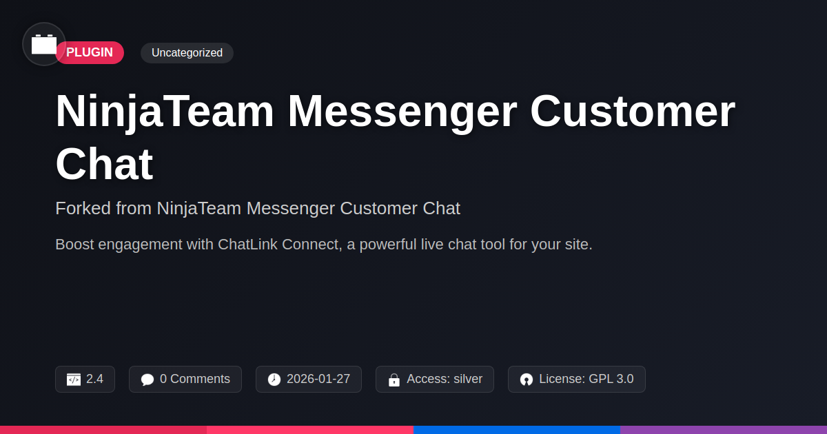 GrootMade is NOT affiliated with NinjaTeam Messenger Customer Chat or its original author. NinjaTeam Messenger Customer Chat™ is a trademark of its respective owner and use of it does not imply any endorsement or affiliation. This product has been forked under the GNU General Public License (GPL) and all non-GPL assets (such as proprietary images, fonts, and branding) have been removed. Distributing GPL-licensed code is 100% legal.