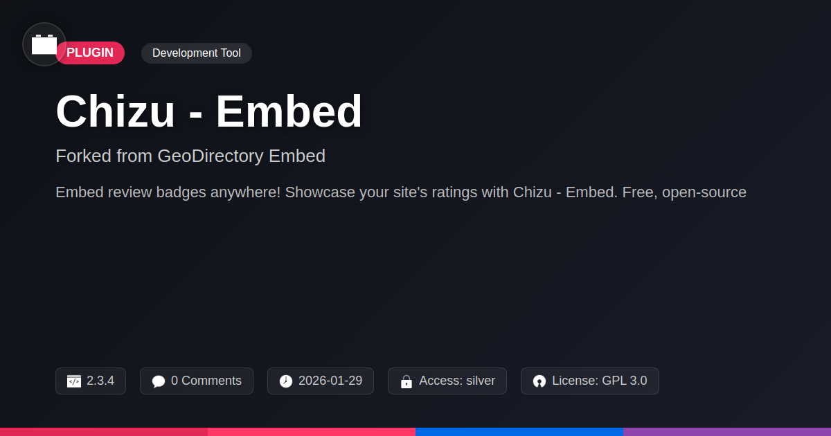 Tired of your amazing directory site's stellar reviews being stuck behind a paywall or an overly complex integration? Do you dream of showcasing those five-star ratings on your personal blog, that niche enthusiast forum, or even (gasp) a competitor's site as a subtle flex? We hear you. For too long, sharing your digital accolades has felt like trying to explain quantum physics to a goldfish. But what if there was a way to effortlessly broadcast your site's awesomeness, transforming those hard-earned positive vibes into easily shareable snippets? We've forked a solid tool, inspired by the fine folks at AyeCode Ltd, to bring you Chizu - Embed. It’s designed for the rebels, the creators, the hoarders of awesome code, and anyone who believes that great feedback should be seen – not hidden. Forget clunky widgets and proprietary nonsense. This is about taking control of your data and showing it off with pride, wherever you please. Ready to make your reviews the star of the show, without the usual developer headaches? Let's dive in.